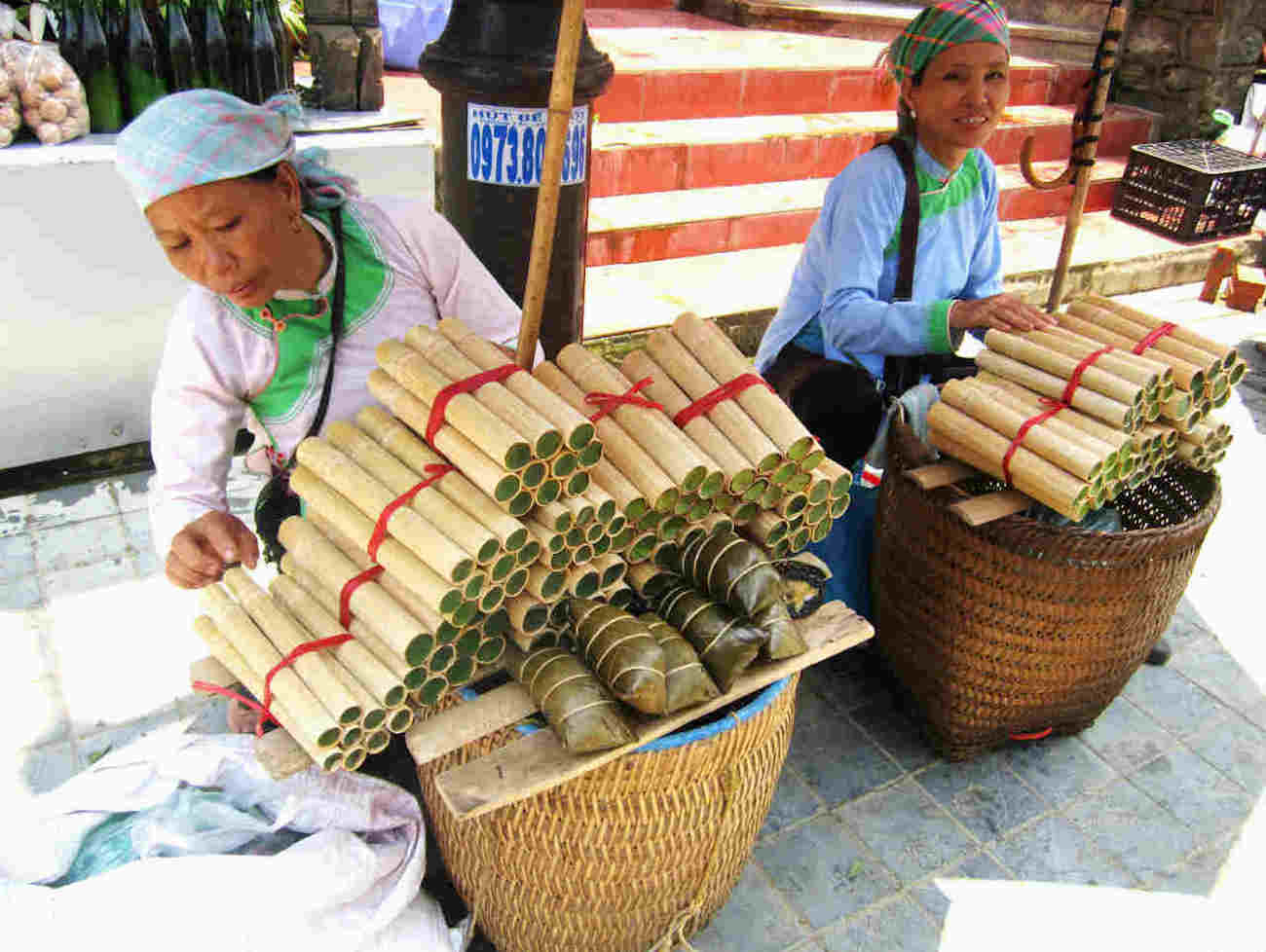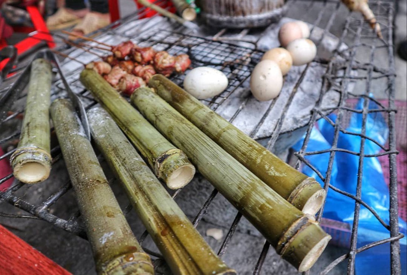Ngoài ra, ở trong các khu chợ cũng có rất nhiều người bán cơm lam nướng sẵn cực kỳ thuận tiện. Trung bình mỗi ống giá sẽ dao động từ 15k đến 25k tùy theo kích thước.