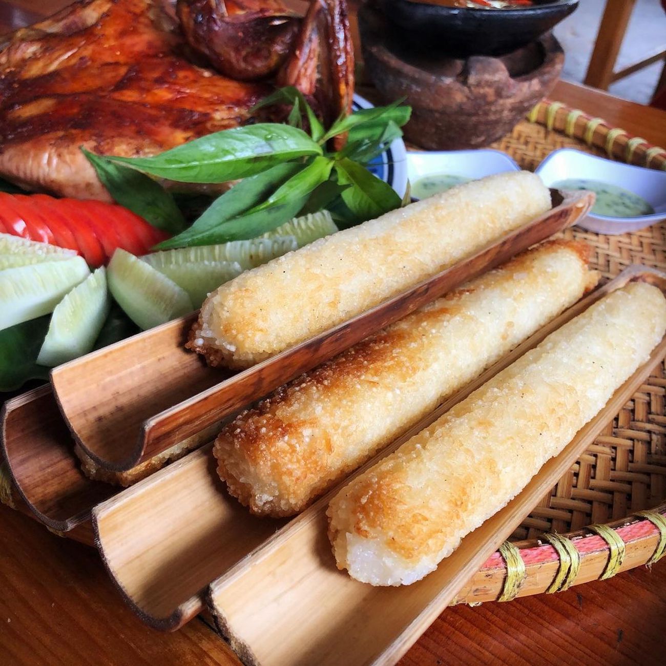 Cơm lam còn được dùng ăn chung với